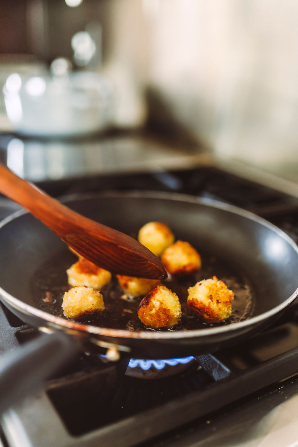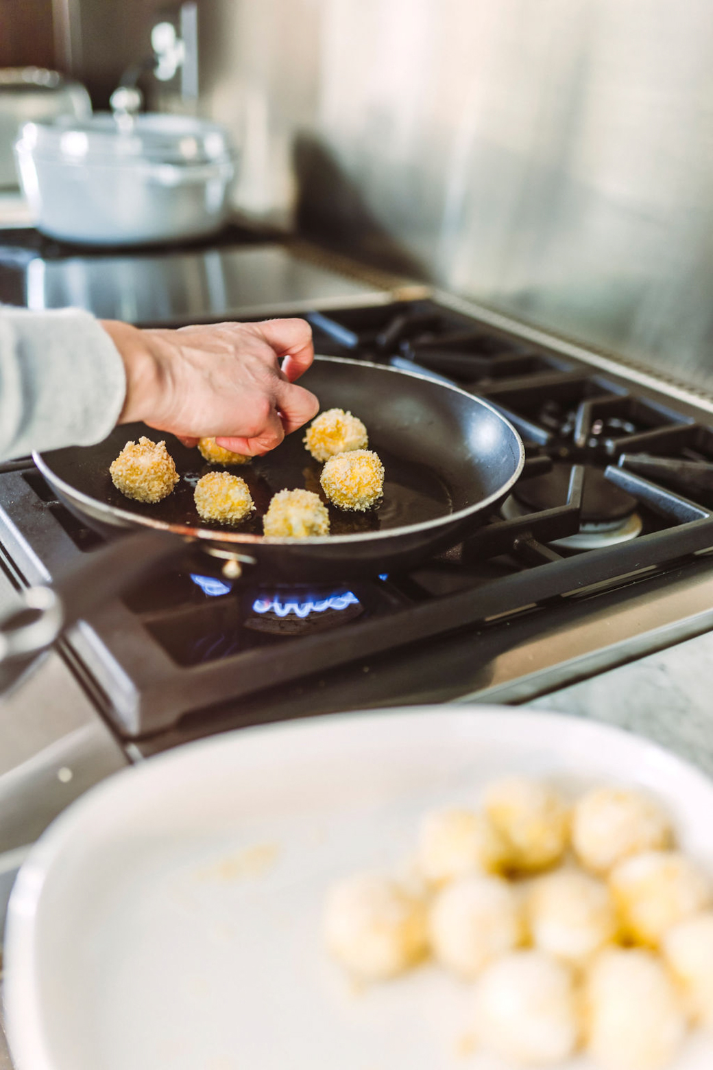 Freeze for 20 minutes! Do not skip this step or the goat cheese balls will fall apart in the oil!