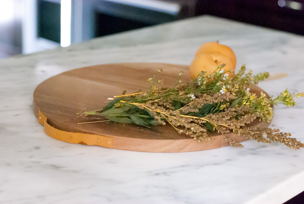 Additional tip: Using a longer rectangular wood board would make for a great Thanksgiving dinner centerpiece display.