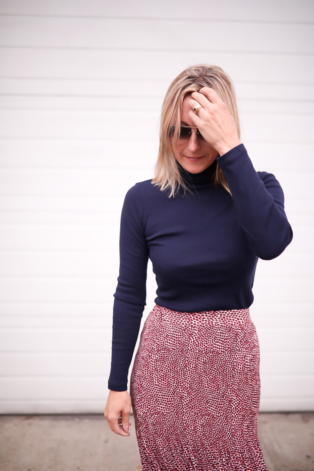 Turtleneck here // Skirt similar here // Sunglasses here // Boots last season