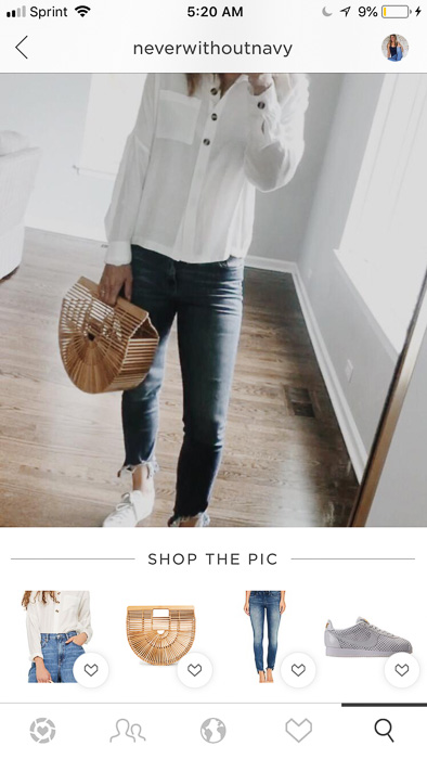 The LIKEtoKNOW.it app. This is an easy and free way to shop your favorite blogger’s Instagram feed! Download the app (pictured left), follow me at Never Without Navy (center) and anytime you screenshot my Instagram photo, all the products details will be right there and shoppable for you in the app (right). You don’t have to be on Instagram to use it either. If you simply download the app and follow me, it works the same way!