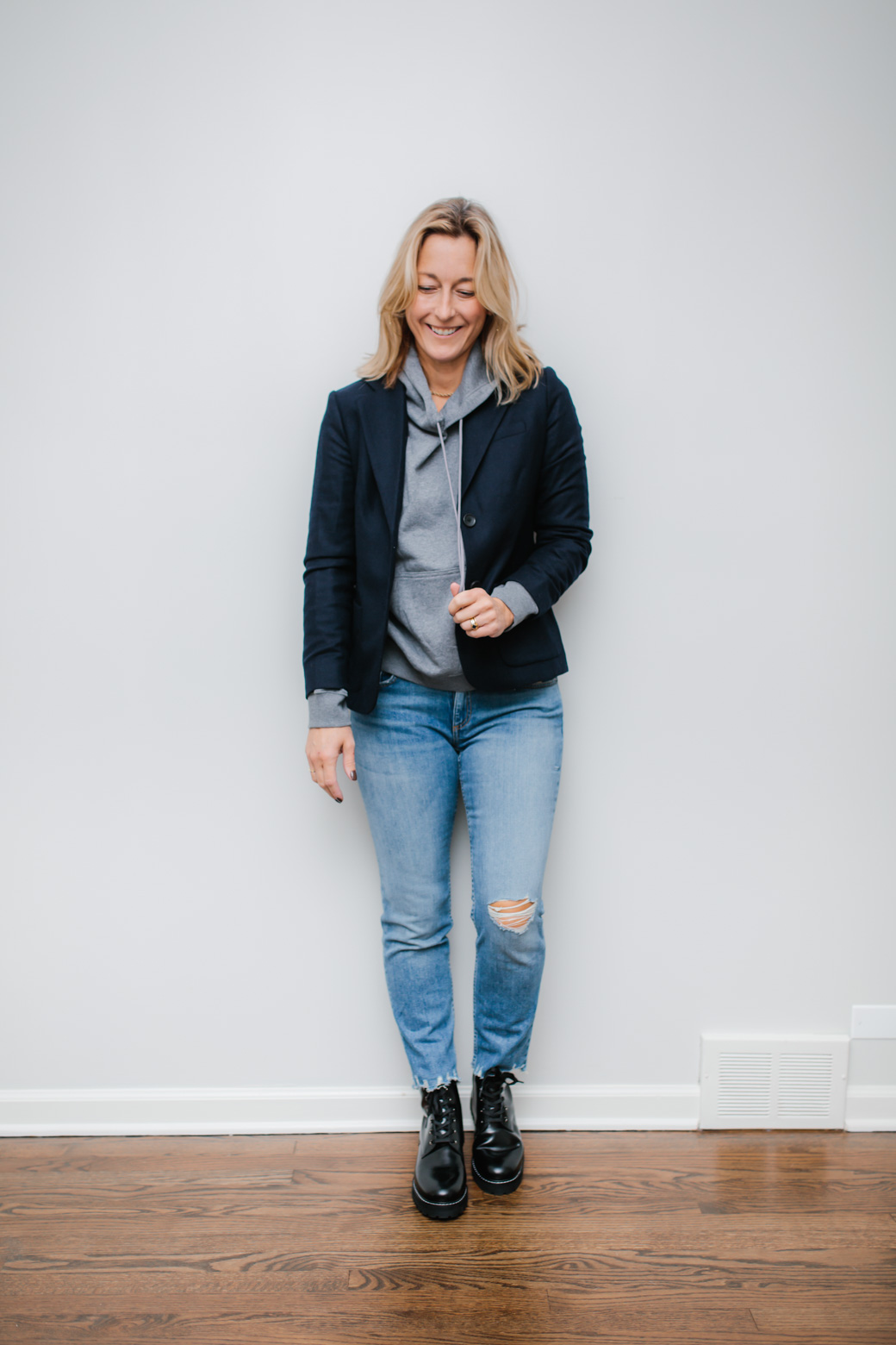 Blazer here (and on sale!) // Hoodie here // Denim here // Combat Boots here
