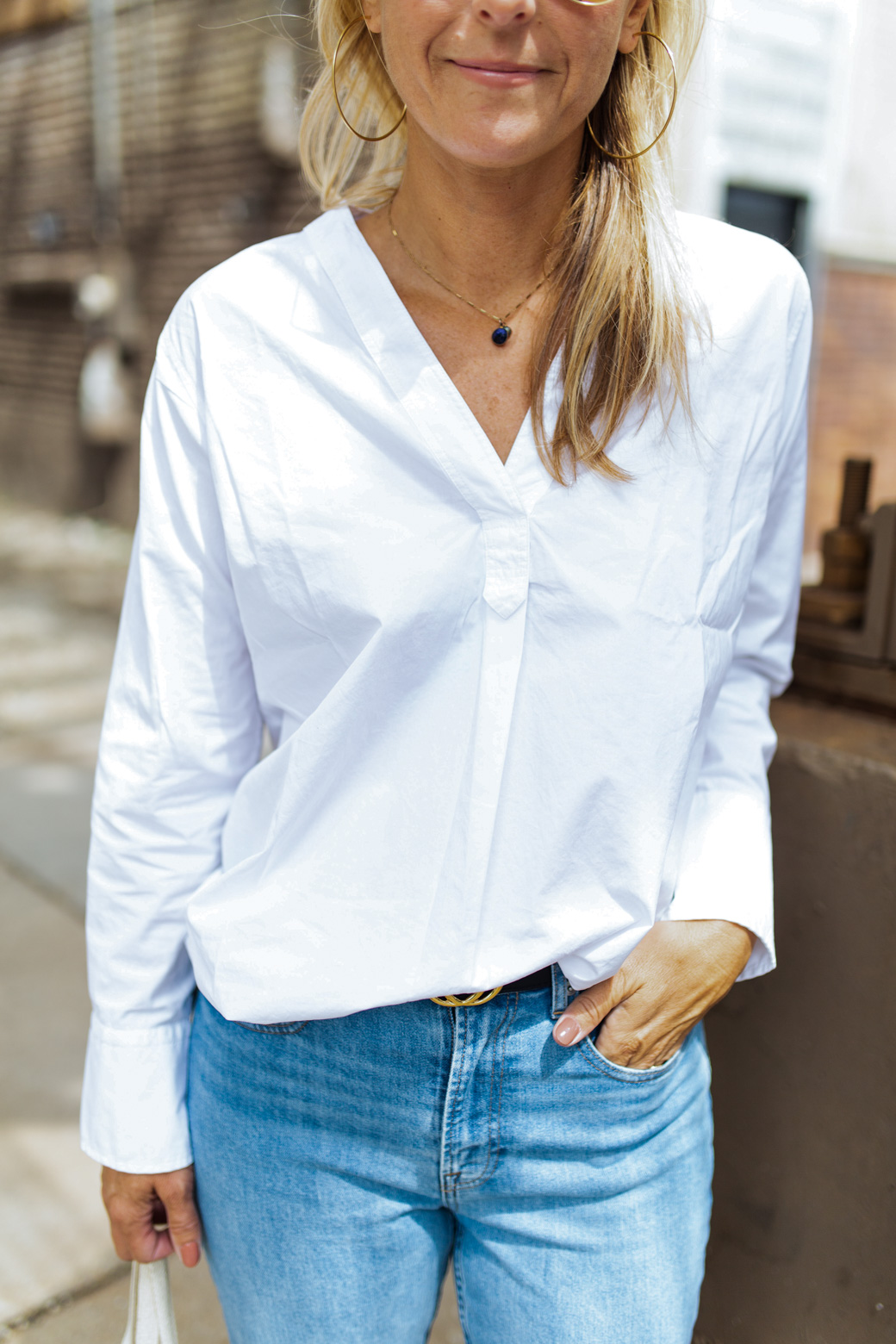 At first glance on their website, Everlane is on point aesthetically. Their basics jump out of the screen and you can almost feel how good they will feel on you. It was hard to decide what to get first, but I honed in on two items-the Poplin V-Neck Tunic Shirt and the Cheeky Straight Leg Denim.